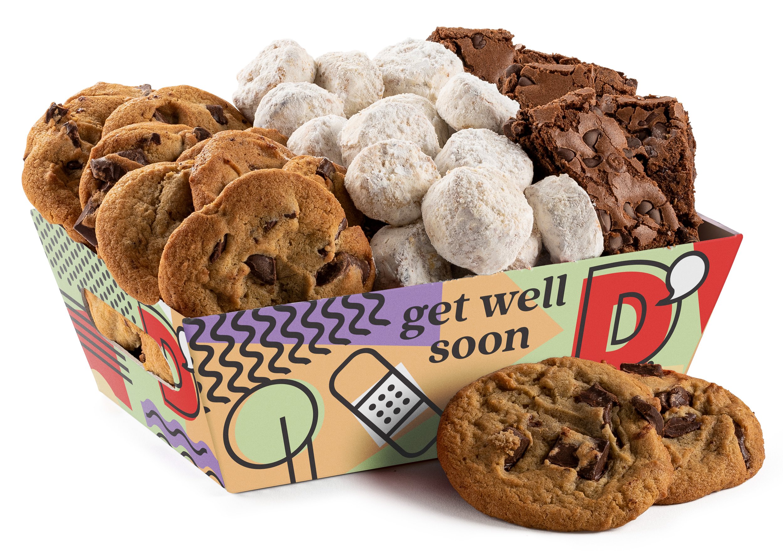 I freelanced for David’s Cookies for a few years, up until the pandemic. I helped design holiday themed tin sleeves, cookie crates, and bucket bands. In addition, I created some catalogs, website banners, gift card designs, a web page, and photoshopped lots of mockups for their marketing.